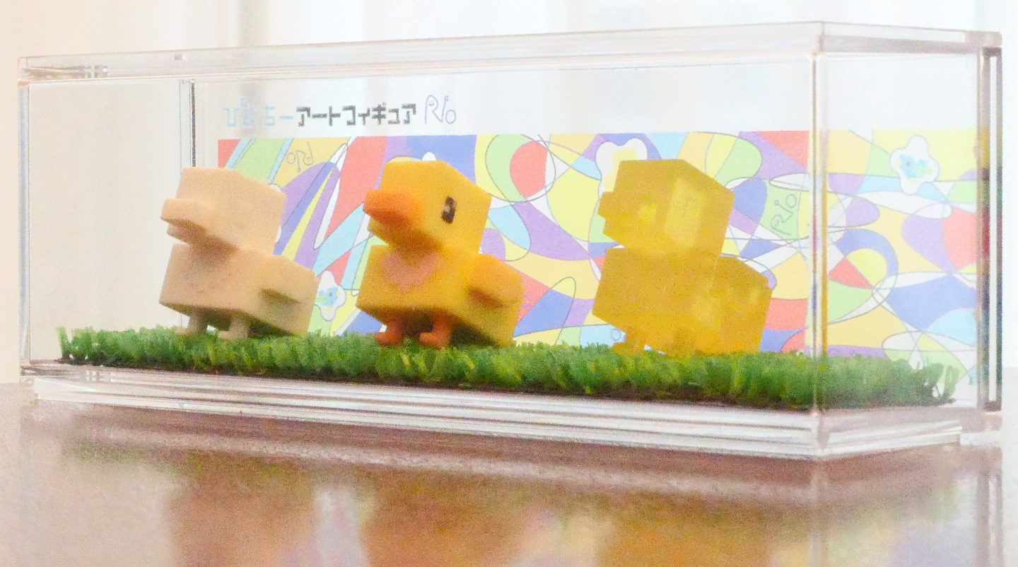 "Piyochi" is a character created by a boy named Rio when he was 11 years old. Though he can't fly, this little yellow bird is super strong and always works his hardest to help others. This figurine is filled with Rio's heartfelt wish to "bring happiness to people."
